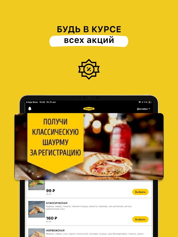In a convenient mobile application from the network of shawarma bars #LAVASH, you can order high-quality and tasty shawarma at an affordable price in your region within a couple of minutes. In the "Menu" section you can always see current prices and dishes, and timely delivery will help you get juicy shawarma or delicious snacks as quickly as possible!