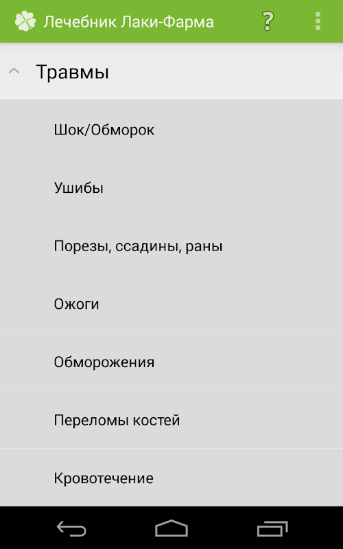 Lechebnik Lucky Pharma - Directory of commonly used homeopathic medicines for various acute diseases for which emergency assistance is most effective homeopathic. Thanks to the convenient grouping of diseases and a detailed description of symptoms, you can quickly pick up the drug corresponding to your case.