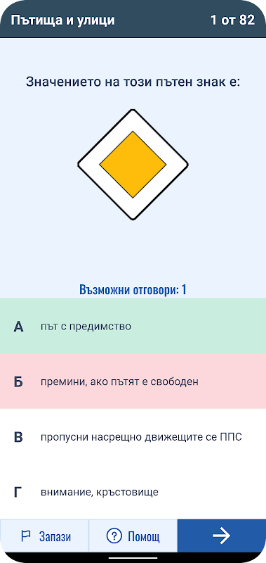 Режим "Пътни знаци" ще ви помогне да научите пътната сигнализация и ще можете да се упражнявате с помощта на богата база пътни ситуации.