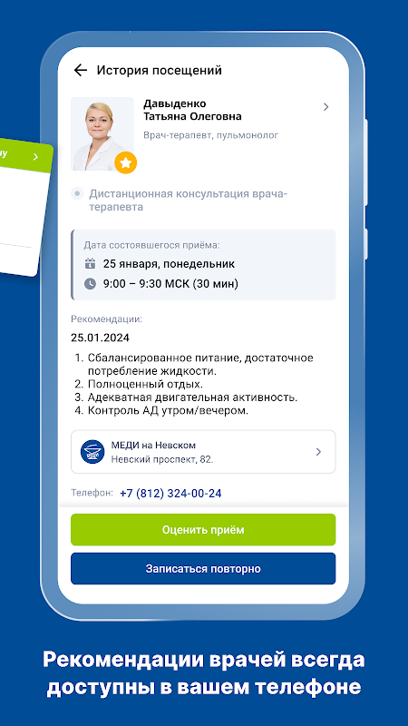 – make an appointment at MEDI clinics, including quick appointments with your attending physicians;