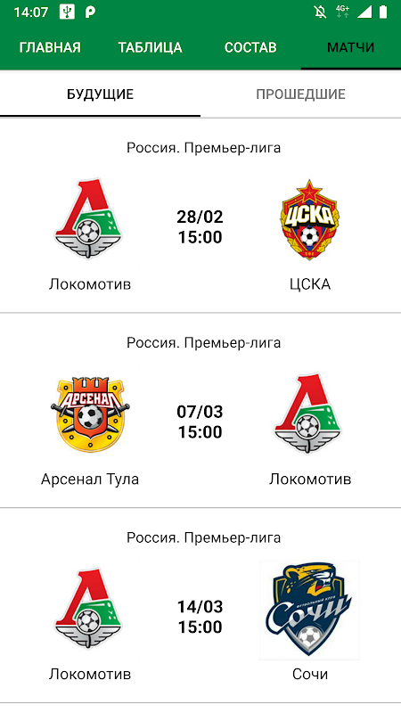 - Удобная возможность посмотреть результаты матчей, узнать о предстоящих встречах