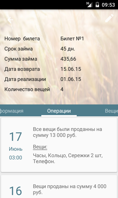 The application will not let you lose all of the important things about your pledges: The loan repayment period or the loan is overdue. Here you can see the full information about your existing loans, past and upcoming events on the pledge.