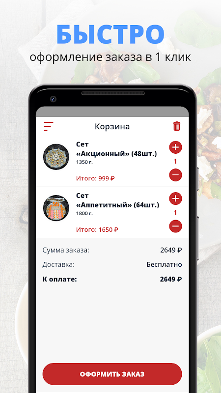 Скачивайте наше приложение, оформляйте заказ и наслаждайтесь любимой едой, где бы Вы ни были! Приятного аппетита!
