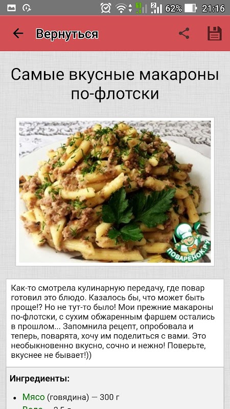 The best recipes of pasta and pasta from Povarёnok.ru - is: