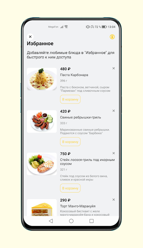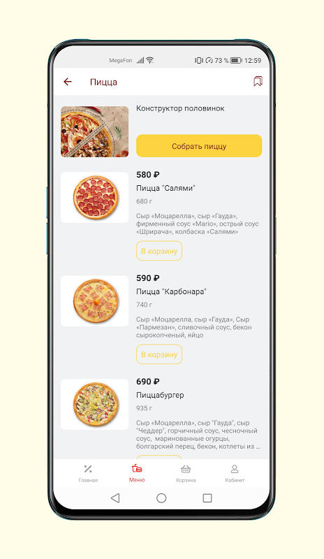 Mobile application for food delivery order from the restaurant Mario's Pizza