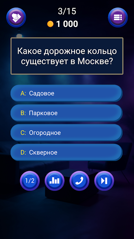 Feel like a participant in the legendary show "Who Wants to Be a Millionaire"! This exciting quiz will test your knowledge, erudition and ingenuity. A bright interface, realistic sound effects and dynamic animation will create the atmosphere of a real TV game. Prove that you are worthy of the title of millionaire!