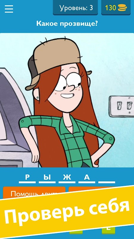 Угадывай имена и прозвища своих любимых персонажей, а также названия различных локаций города Гравити Фолз!
