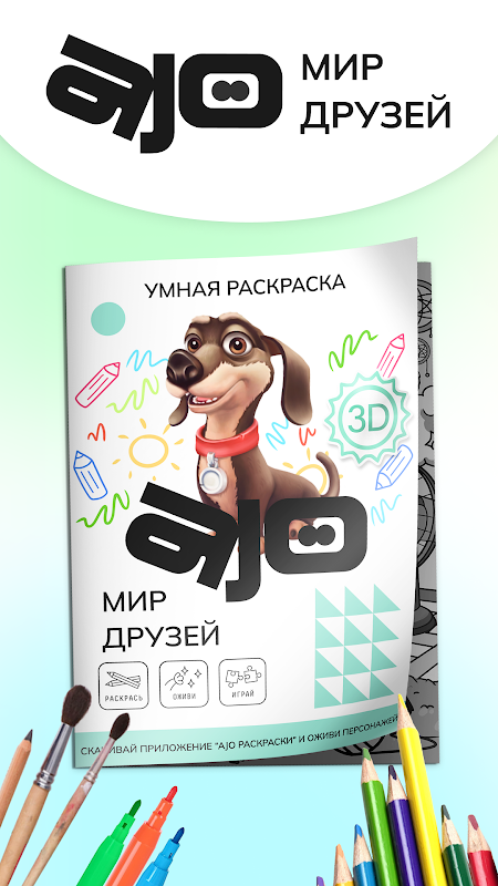 The AJO Friends World app and smart coloring is a unique opportunity to immerse your child in the world of their favorite pets - cats and dogs. Specially selected pictures for coloring and a mobile application with which you can "revive" your drawings will turn this acquaintance into a creative educational game.
