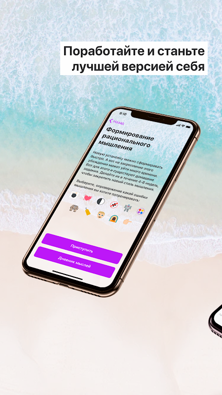 In the paid section of the application, you can independently detect cognitive errors and use the techniques provided to correct them. By answering these questions, you will transform your vision of the situation and notice how your emotions and behavior change.