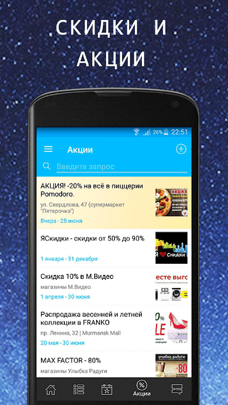 НОВОСТИ || АФИША || АКЦИИ || СПРАВОЧНИК «Мой Мурманск» - долгожданное городское мобильное приложение, которое дает доступ ко всей информации о нашем родном городе: новостям, афише и справочнику организаций. Теперь Мурманск всегда с тобой! Преимущества приложения: - Забудь про сайты! Вся информация о Мурманска у тебя в кармане. - Не ищи информацию на разных порталах! Все собрано в одном приложении. - Будь в курсе событий! Все мероприятия родного города у тебя под рукой. - Следи за новостями города и участвуй в их создании! - Пользуйся оффлайн! Справочник доступен без интернета. Проект «Мой Мурманск» создан, чтобы облегчить жизнь жителям нашего города. С нашим приложением любой горожанин может получать “на ходу” всю самую важную информацию от актуальных новостей до времени работы любимого заведения. При этом мы поддерживаем активных жителей города - организаторов мероприятий и бизнесменов, которые получают площадку с большим охватом для реализации своих проектов.