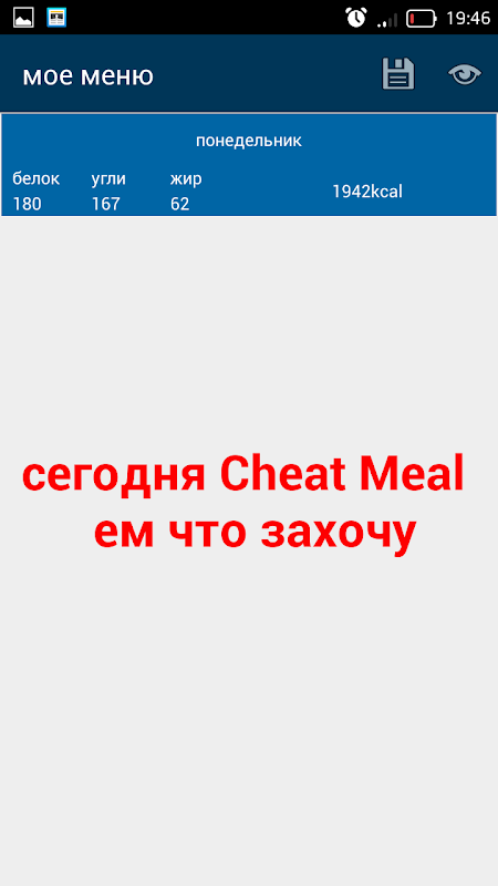 Многие люди не могут набрать вес или же похудеть лишь потому, что неправильно питаются.Программа поможет составить рацион на день на основе ваших данных.