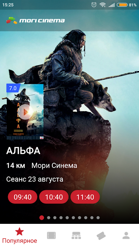 В приложении можно приобрести билеты в кинотеатры сети «МОРИ СИНЕМА» по всей России. Информация о сеансах и наличии мест постоянно обновляется и всегда актуальна.