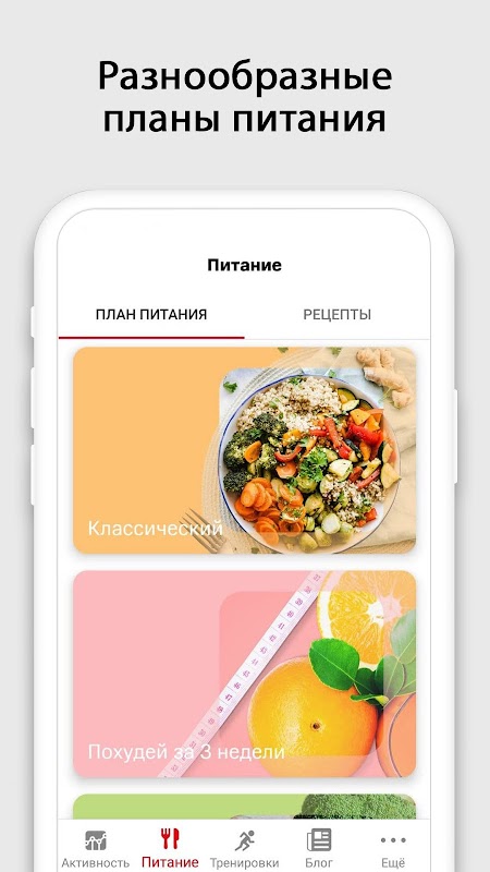 First, you choose a meal plan, then the app calculates your desired calorie intake and serving sizes. Every day you get simple recipes that help you gradually rebuild your eating habits. The menu is designed in such a way that you eat a variety of food and do not feel hunger.