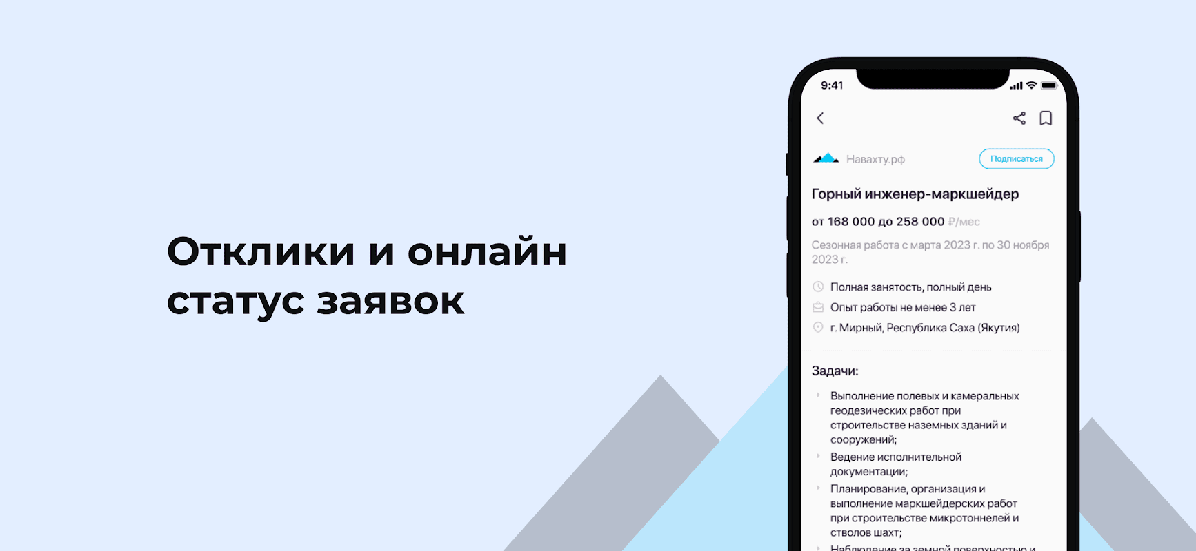 The service "Navakhtu.rf" is a simple and convenient application for searching for work or job seekers for quick employment in remote locations throughout Russia.