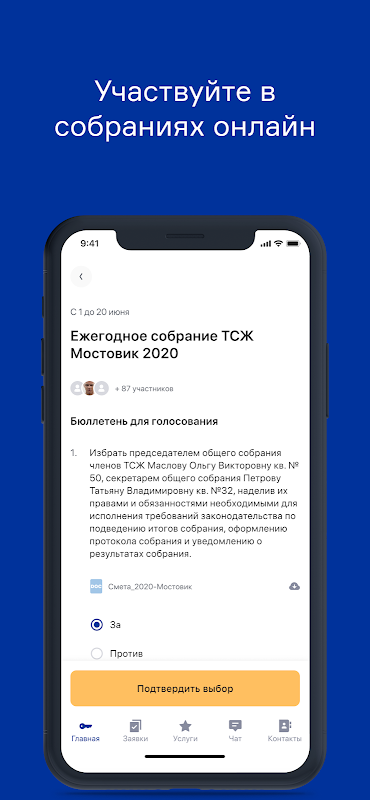 - submit proposals for the inclusion of work in the plan for future periods, see the proposals of the management company and your neighbors, discuss the proposals in the chat;