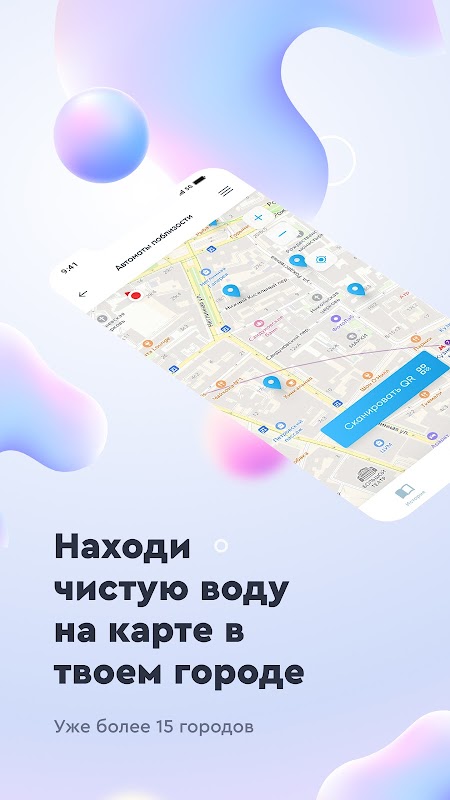 We have made an application for finding and buying clean drinking water from vending machines near your home. We believe that clean and tasty water is the reason for a great mood and success in business. Water has 10 degrees of purification, which gives our water a great taste. At the same time, useful microelements are preserved in water; our water is also recommended for small children. On the map, you can find the machine closest to you, see the purity of the water by the percentage of particles (PPM), water temperature. If you link a card, you can buy water from the vending machine quickly and at the best price. Just open the app when you are near the machine and scan the QR code on the machine.
