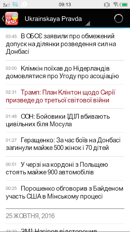 Новини України is a fast and easy way to read news on Android. It gives you easy access to read the most popular newspapers from Ukraine. All the headlines of major newspapers in the palm of your hand.