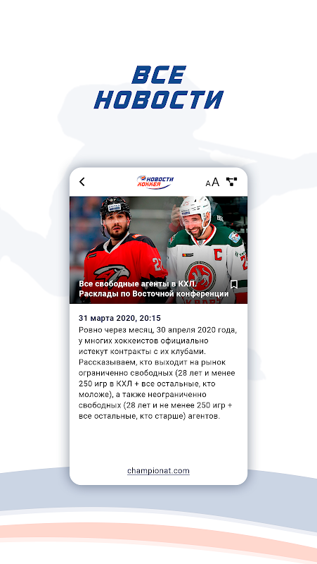 • добавлять новости в избранное, читать и возвращаться к ним тогда, когда удобно – новости хоккея на русском;