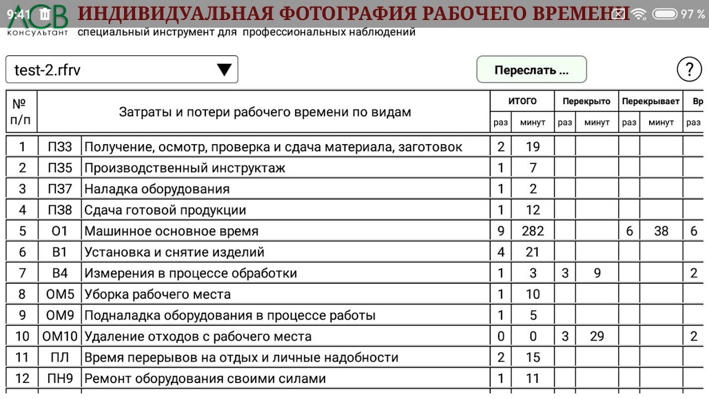 - the method of instant observations (one observer - a lot of observed workers).