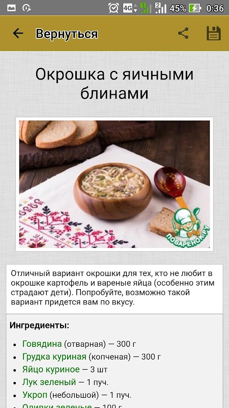 Открывайте для себя новые рецепты столь привычного блюда, как окрошка! А если какой-то из них вам приглянулся – не спешите переписывать его в тетрадь. Лучше добавьте его в собственную кулинарную книгу – там он всегда будет в целости и сохранности!