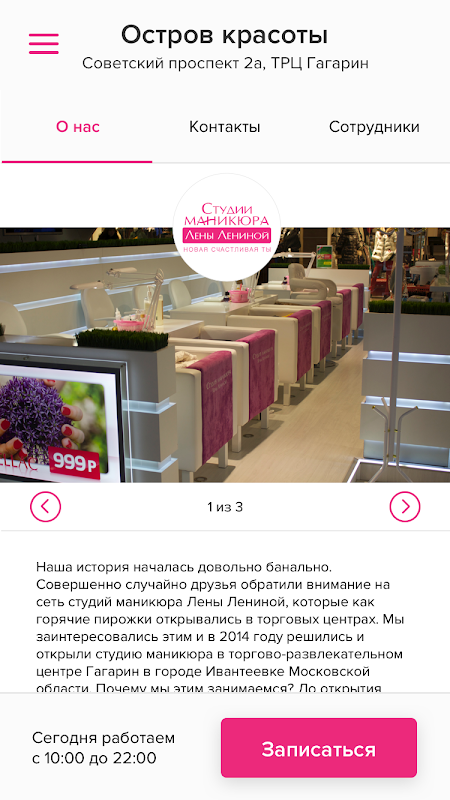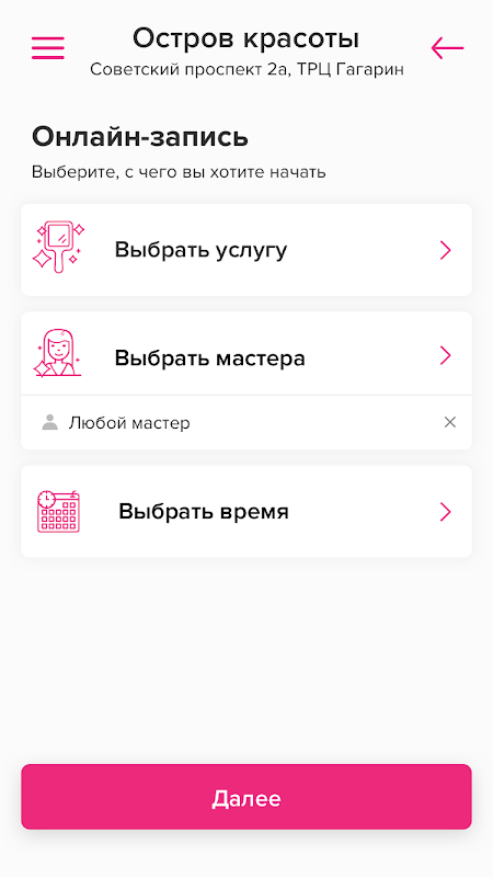 - Personal account with a history of all previous and future visits, as well as favorite services