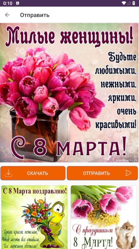 Currently the application contains pictures and postcards for March 8 (International Women's Day)