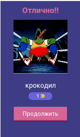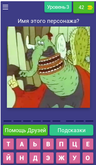 В приложение встроена система подсказок. Если не сможете вспомнить название мультипликационного героя, то смело пользуйтесь этой функцией. Она поможет пройти эту викторину до самого конца.