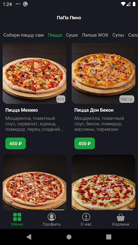 Dad Pino! Hot pizza! Fresh sushi! Fragrant wok! And all in one place with delivery in your city or area!