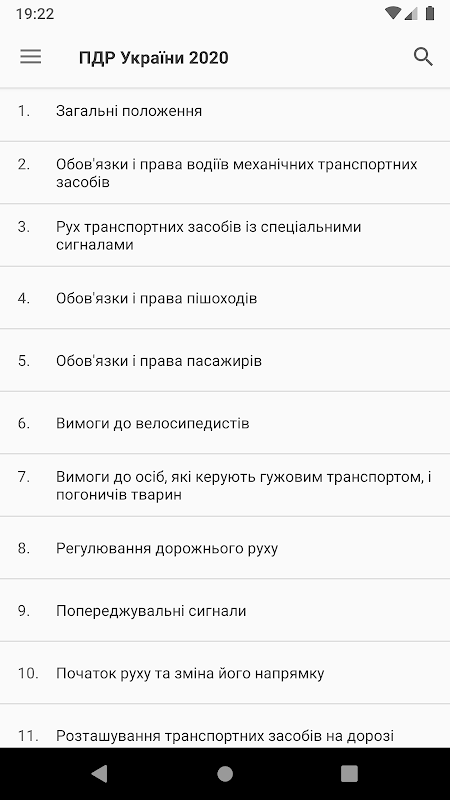 Даний додаток містить актуальні на 2021 рік Правила Дорожнього Руху України (ПДР). З його допомогою Ви зможете вивчити ПДР, або освіжити знання.