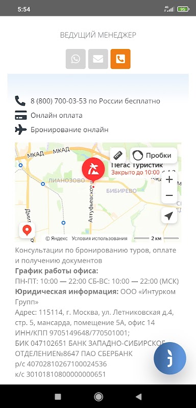 4. Manager contacts - will help you find a suitable tour, recommend a hotel, answer your questions.