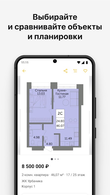 • Get detailed information about the company's projects: location, deadline, layout, key advantages of the residential complex, internal infrastructure.