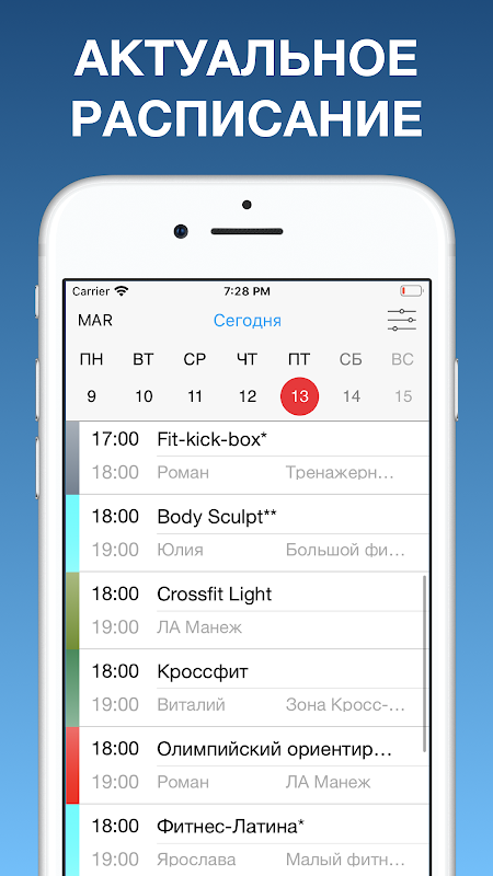 – Актуальное расписание групповых тренировок