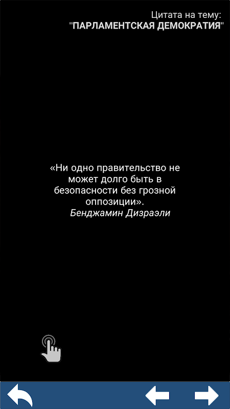 Приложение “Политические теории за 60 секунд”– даёт представление обо всех политических строях, политических и экономических идеях, а также их взаимном влиянии друг на друга как в рамках отдельного государства, так и мирового общества.
