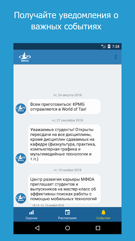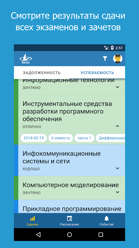 Информация об успеваемости, расписание группы, уведомления всегда с тобой и доступны оффлайн