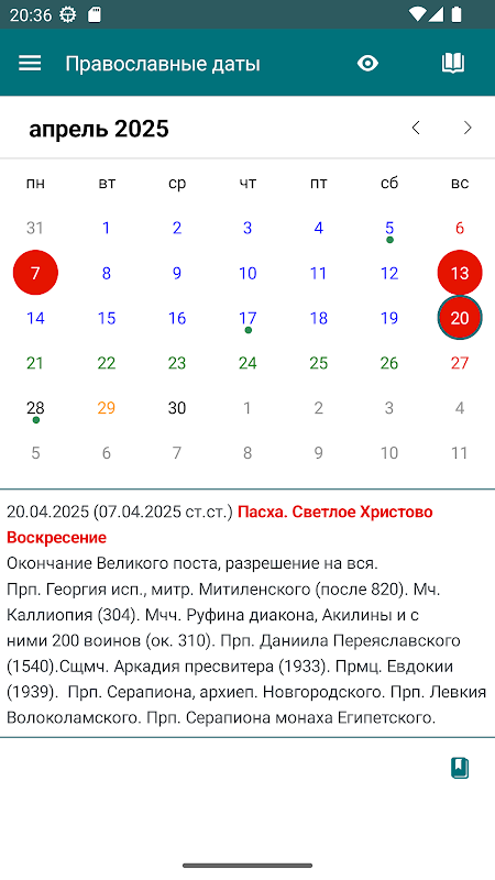 - In the calendar grid, great and twelve-year holidays, many-day fasts, days of special commemoration of the dead and continuous weeks are marked;