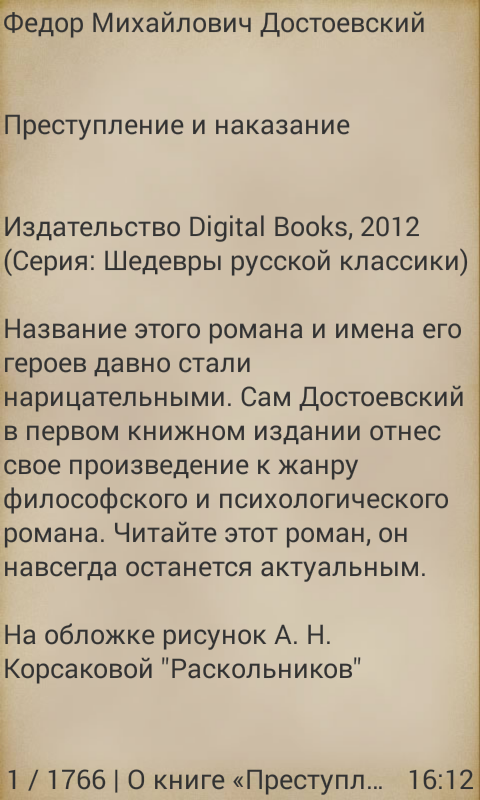 Publisher Digital Books popularizes works of classical literature and support new authors. We produce books in the form of applications for mobile devices based on the Android operating system. With a simple menu every reader can customize the display of books under the specifications of your device.