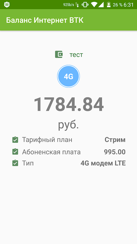 • Проверка баланса Интернет ВТК screenshot 2