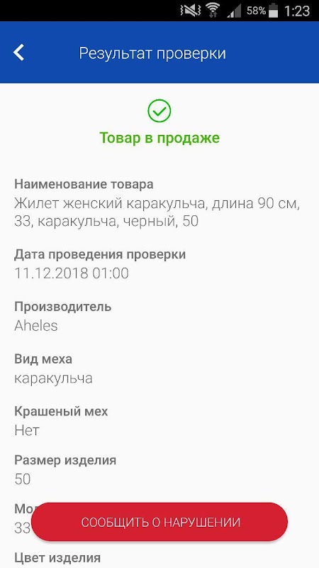 Приложение «Проверка маркировки товаров» позволяет проверить легальность приобретаемого (приобретенного) товара, а также сообщить о нарушении.