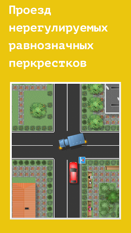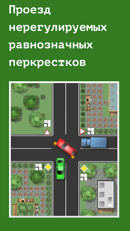 Each traffic situation is accompanied by a comprehensive certificate explaining what the driver should do in each specific case. The application allows you to track your workout progress.