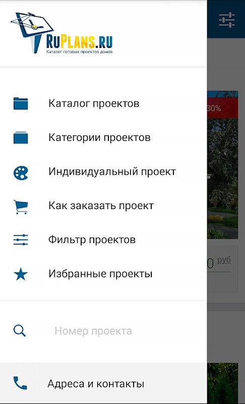 "Projects RuPlans houses" - is a mobile application that gives the most complete picture of the projects of country houses, cottages, as well as all the necessary information for the construction.