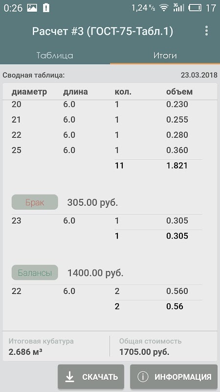 Calculation cubing Pro - is an application to quickly and easily calculate the cubic capacity of sticks, logs and sawn timber to store all the data on your phone and send them by e-mail in a format xls.