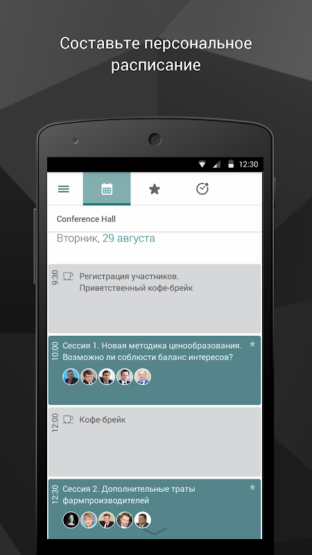 - Получать уведомления о начале интересующих Вас сессий и дискуссий