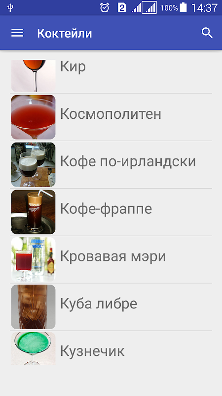 - Избранное и закладки (помечайте интересные статьи звездочкой. Список коктейлей будет отображаться в избранном.)