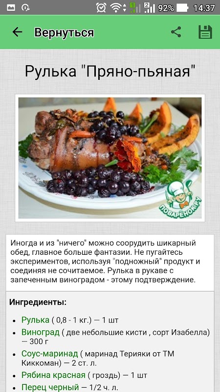 A collection of turn-based recipes with photos from the shank Povarenok.ru