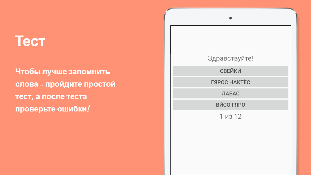 The application will allow you to take the first step towards learning the language, to interest you, and then it is up to you to decide whether to limit yourself only to colloquial phrases in Russian, or go further, studying grammar, vocabulary and syntax.