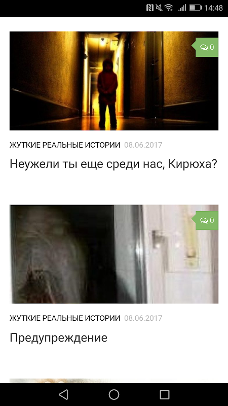 Наше приложение Самые страшные истории разделяется на разделы: