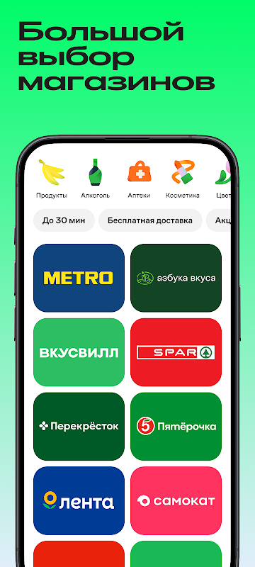 We work with such networks as Pyaterochka, Lenta, Samokat, METRO, AUCHAN, Magnit, Perekrestok, O’KEY, Globus and others. Cooper also has almost 1,300 non-food stores: you can order cosmetics from Rainbow Smiles, pet supplies from Four Paws, and even gadgets from Eldorado with delivery!