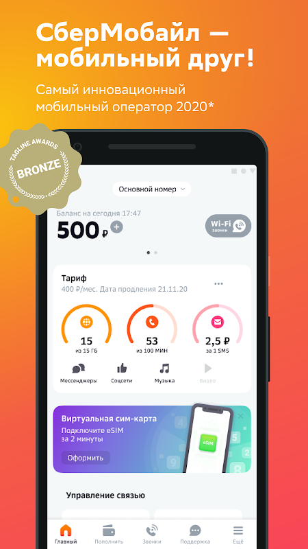 * В 2020 году виртуальный оператор связи СберМобайл, входящий в экосистему Сбербанка, получил международную премию MVNO Awards в номинации Most Innovative MVNO («Самый инновационный MVNO»), став первым российским обладателем этой престижной международной награды.