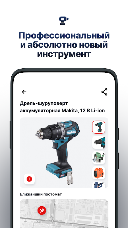 The first automated rental of professional tools in Russia without collateral.