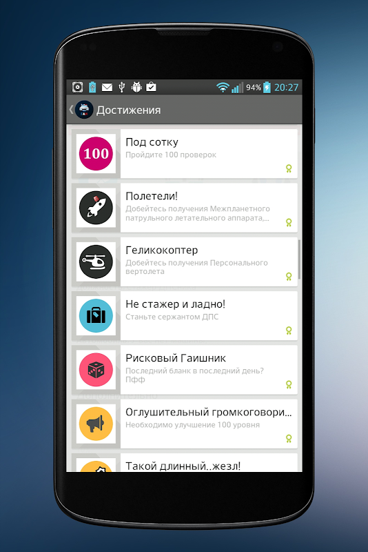 Симулятор гаишника - шуточное приложение симуляции жизни типичного гаишника. Не стоит воспринимать всё всерьез, но элементы правды не упущены:) Попытайтесь выжить как можно дольше, постоянно проходя проверки квалификации и останавливая всё больше и больше авто. Поднимайтесь по карьерной лестнице, улучшайте аксессуары и ваша жизнь превратится в сказку!